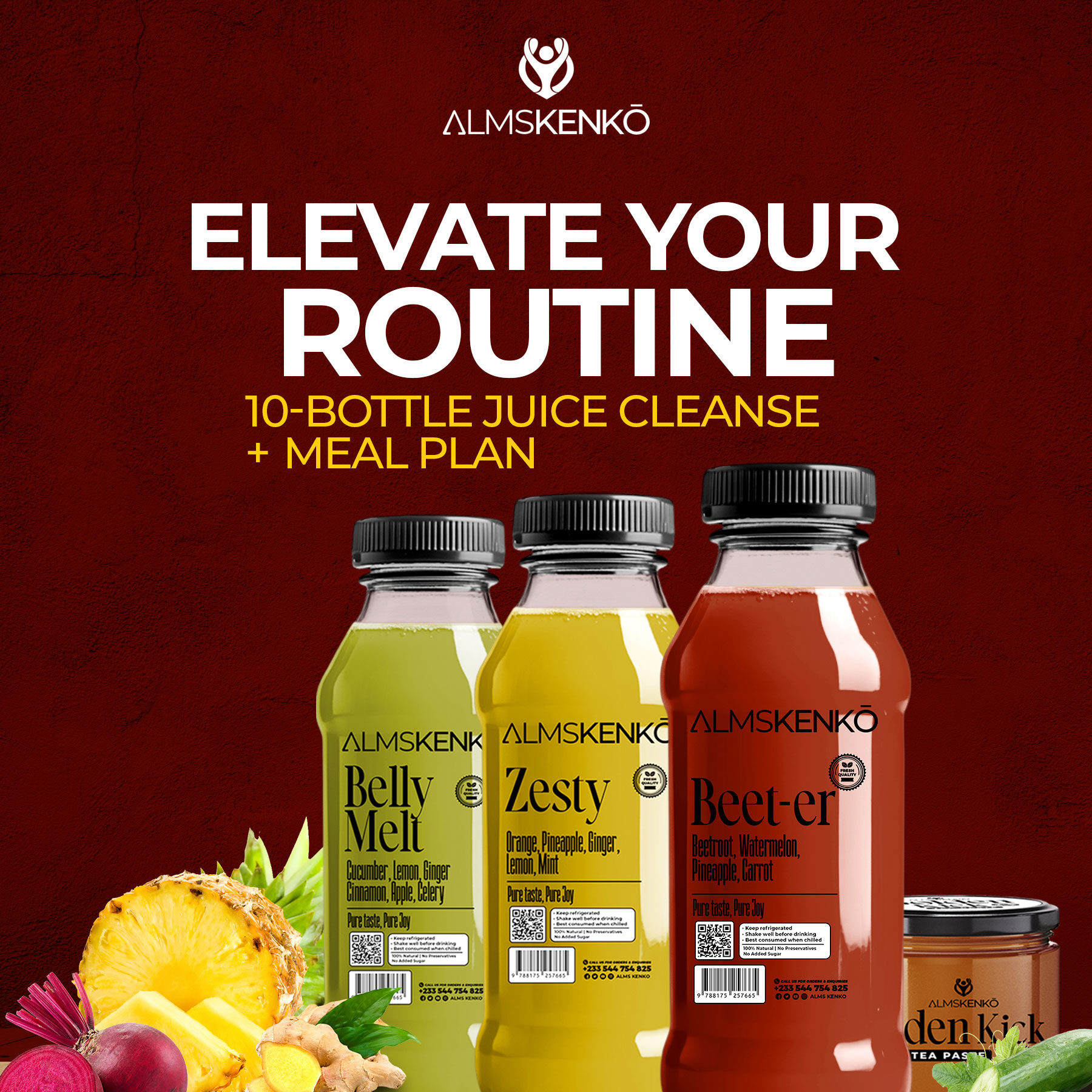 Revitalize after every meal with our customizable 10-bottle juice cleanse, paired with a personalized meal plan! Choose from a variety of fresh ingredients like ginger, pineapple, and beetroot to support digestion, boost energy, and detox naturally. Feel refreshed, balanced, and energized—perfect for your unique needs. Drink clean, eat clean, live clean!